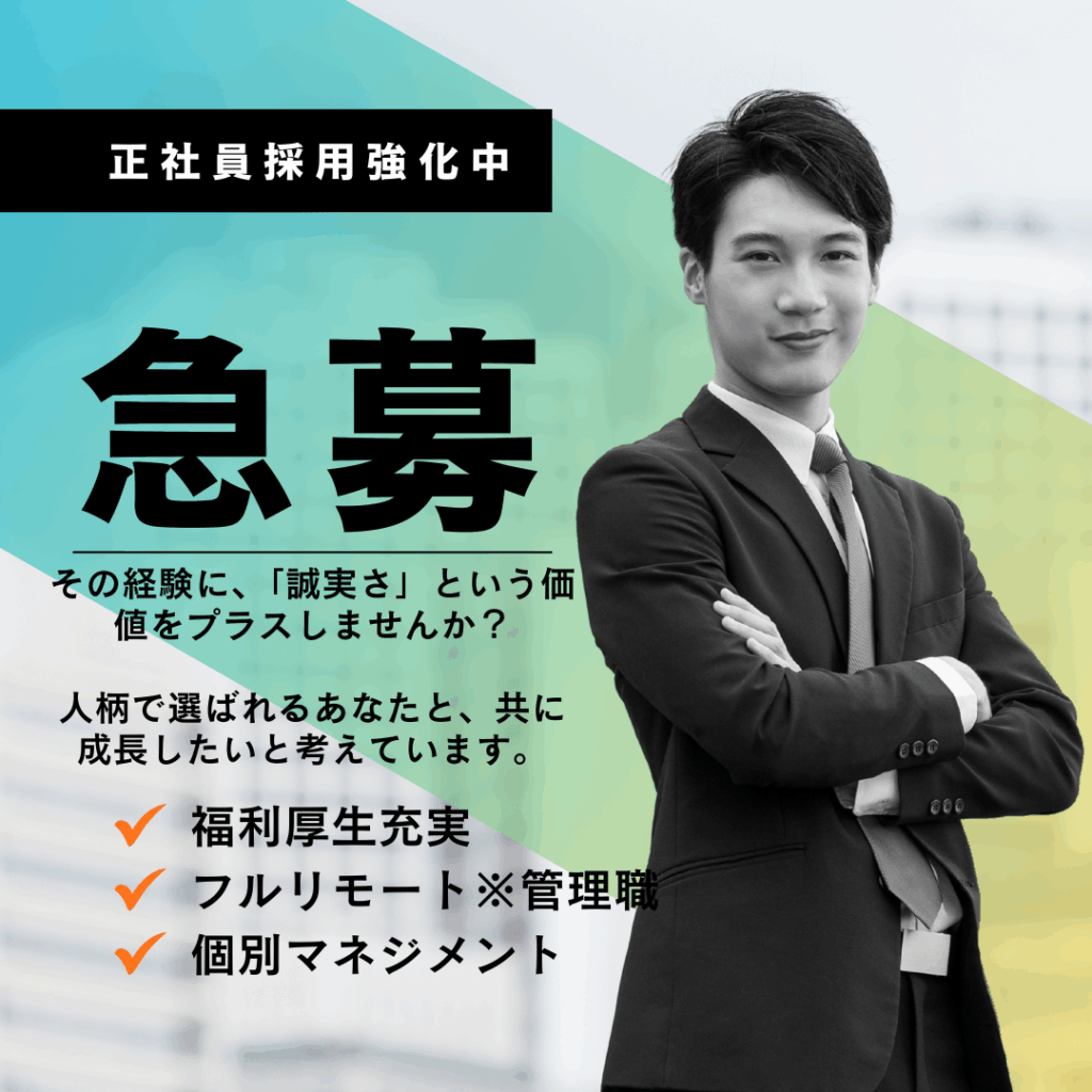 現場で培った経験とあなたの誠実な人柄を活かし、今度はチーム全体を導く役割に挑戦しませんか?私たちが求めるのは、メンバーを数字で縛るのではなく、一人ひとりに寄り添い、信頼でチームをまとめ上げることができるリーダーです。